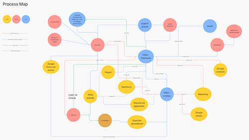 We developed service blueprints for each of YASU’s programs and grants. This understanding of “What Is” in YASU today served as a jumping off point to make recommendations, or a roadmap, of “What Could Be” in the future.
